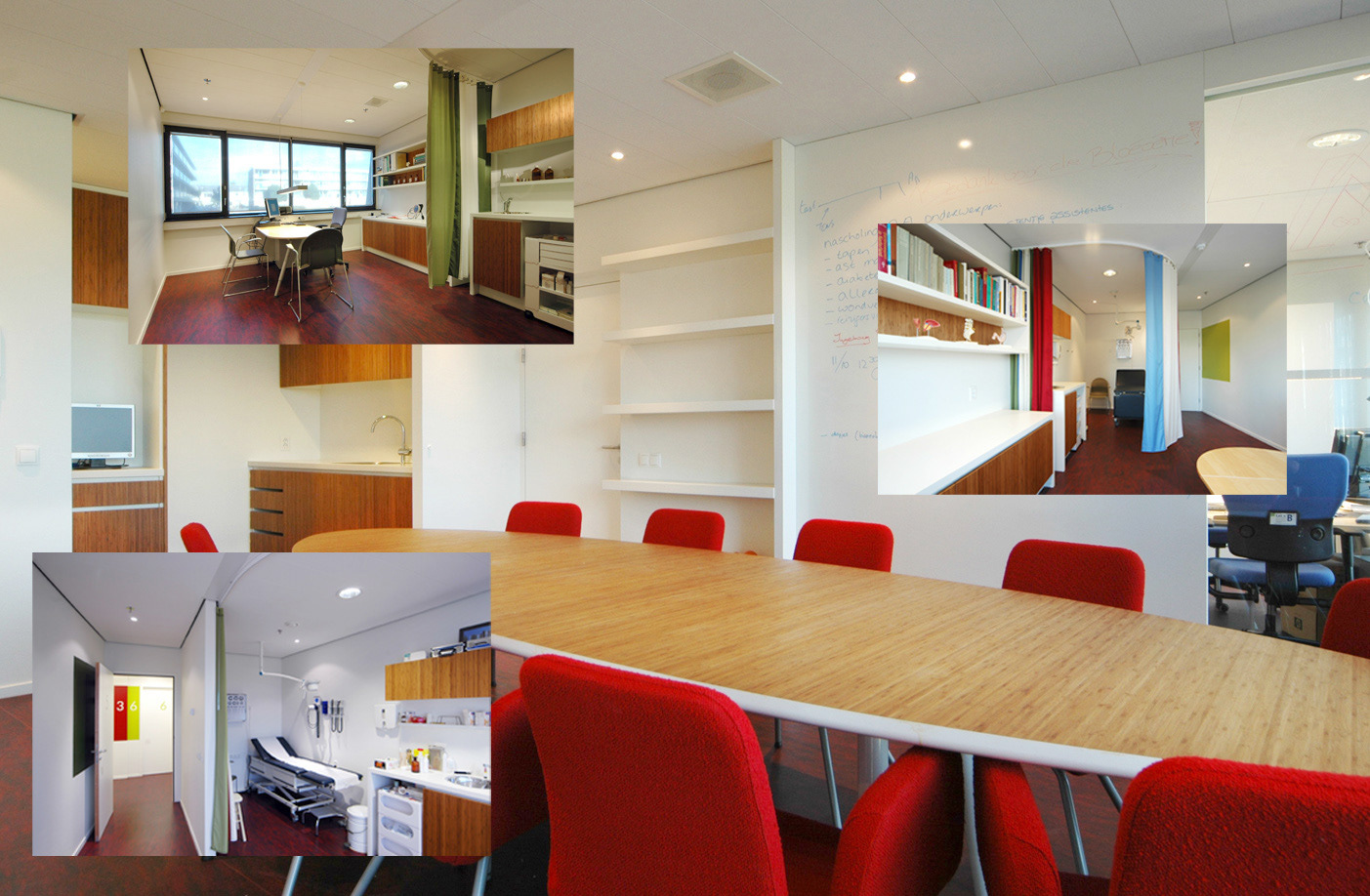 Ontwerp en uitwerking gezamenlijke huisartsenpraktijk in nieuwbouwcomplex. In samenwerking met Hollandse Nieuwe.